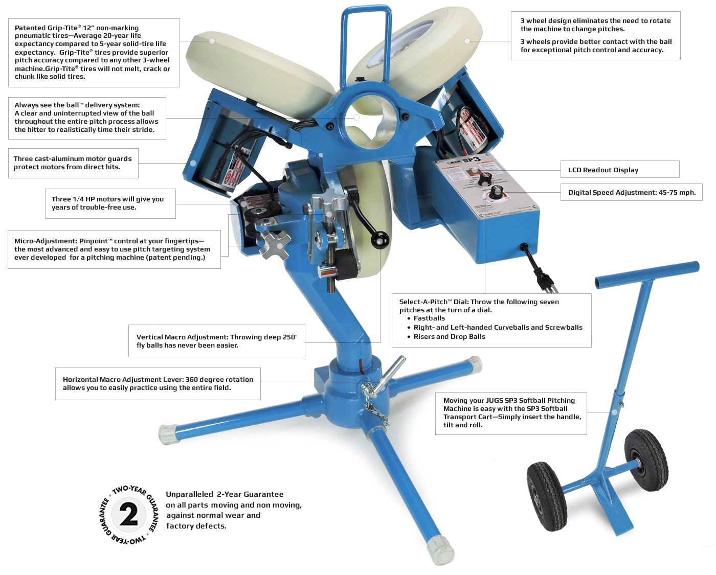 Pinpoint™ micro adjustments, Select-A-Pitch pitch selection, and a sturdy cast aluminum body puts this pitching machine in a league of it's own.